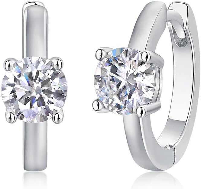 0.5ct VVS2 D-color Round Cut Brilliant Solitaire Diamond 4-Prong Hoop Earrings for Women in Sterling Silver,Wife Birthday Gift Ideas