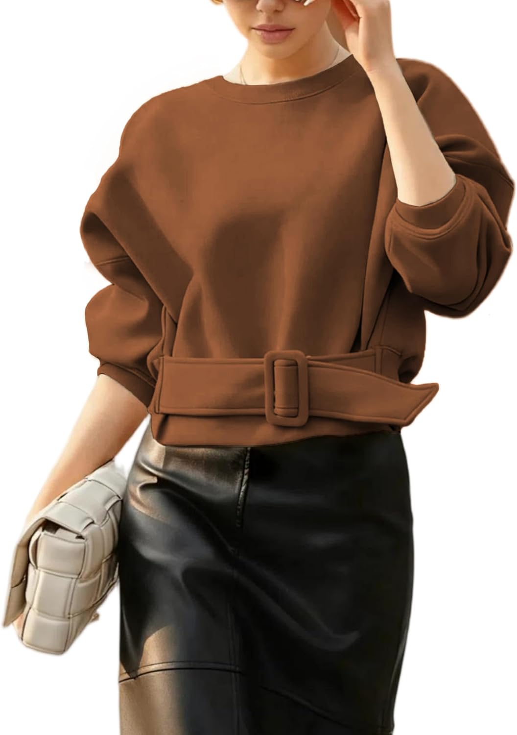 Yidarer Women Pullover Sweatshirts Cropped Crewneck Long Sleeve Belted Casual Y2K Lace Up Tops 2026 Spring Outfits