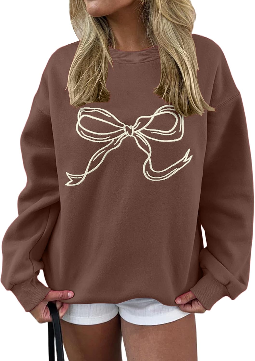 Ythomm Women’s Bow Graphic Sweatshirts Oversized Crewneck Drop Shoulder Pullover Sweatshirt Long Sleeve Tops 2025 Fall Outfit