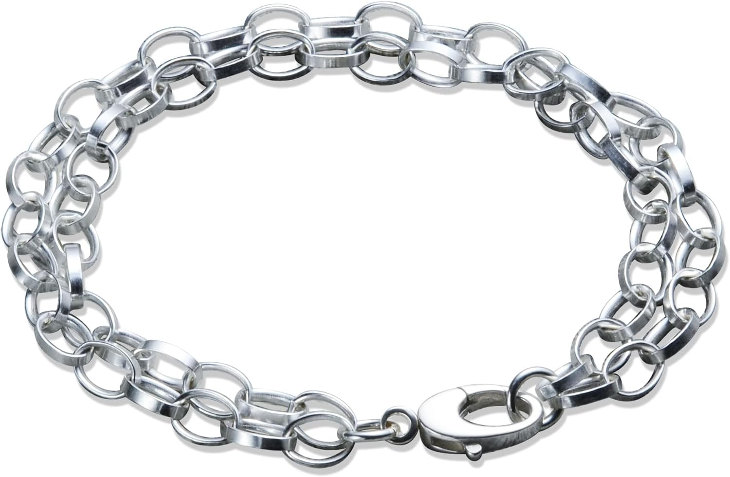 Layered Chain Charm Bracelet in Sterling Silver 8.0 inches
