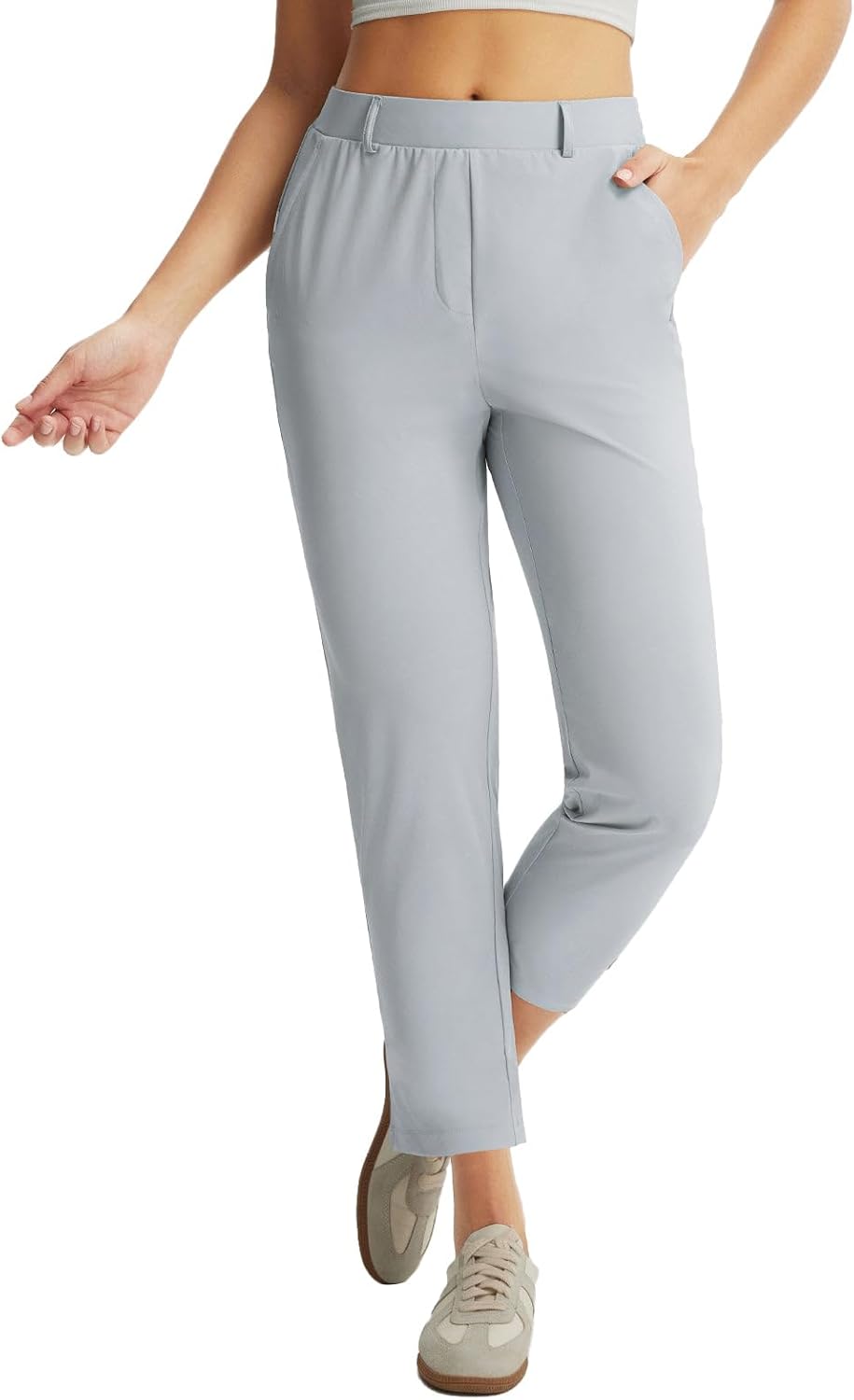 baleaf Women's Golf Pants with Belt Loop Deep Pockets Stretch Travel Casual Work Petite Ankle Slacks Lightweight