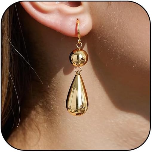 Gold Statement Teardrop Dangle Earrings for Women Trendy Silver Pearl Ball Tear Drop Dangling Long Huggie Hoop Earring Vintage Unique Cool Prom Jewelry
