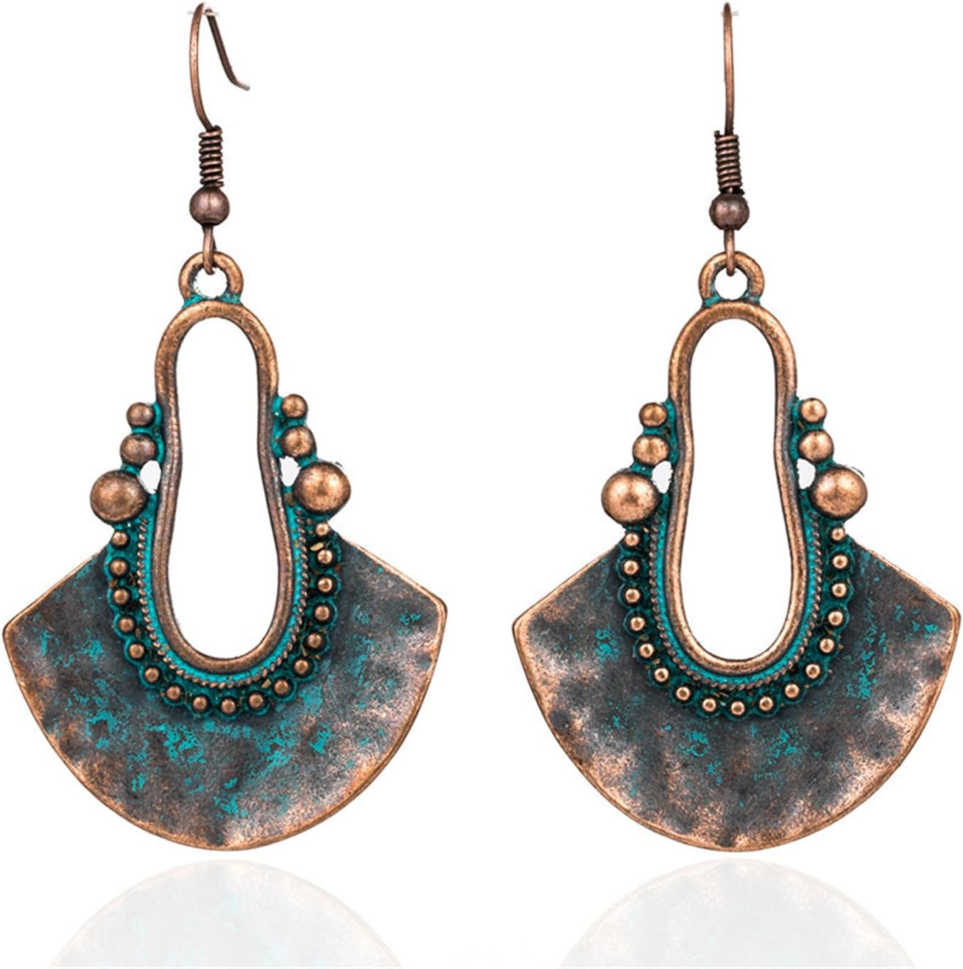 Boho Chic Handmade Hollow Shield Shape with Hammered Drop Earrings for Women Vintage Statement Antique Ethnic Earrings Vintage Gold Silver Plated Hollow Earrings Jewelry Gifts
