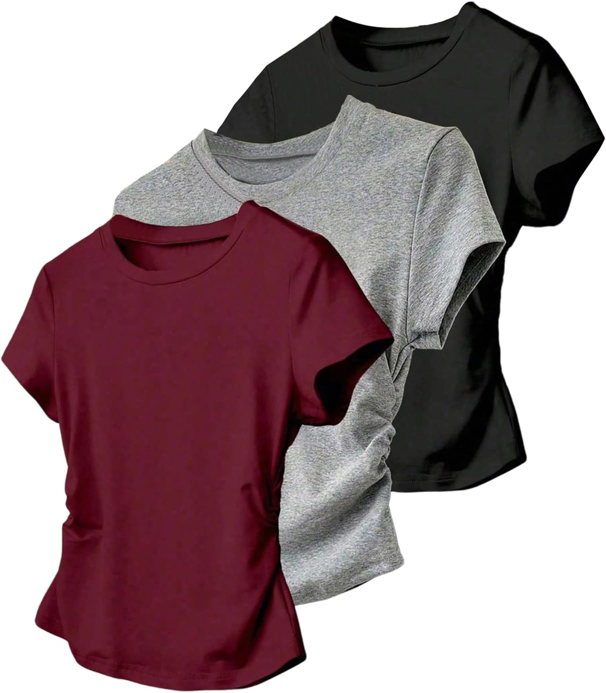 Women's 3 Packs Basic T Shirts Short Sleeve Crewneck Ruched Tops Fitted Casual Summer Top Tees