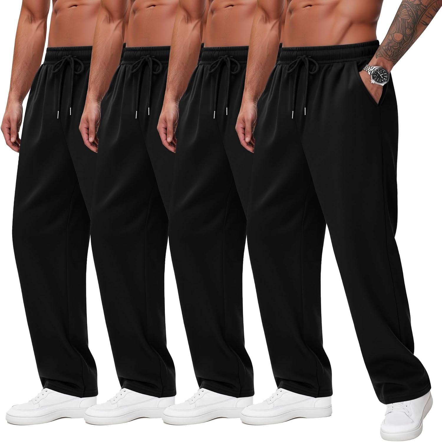4 Pack Mens Big and Tall Sweatpants Athletic Workout Lounge Open Bottom Pants Drawstring Joggers with Pockets