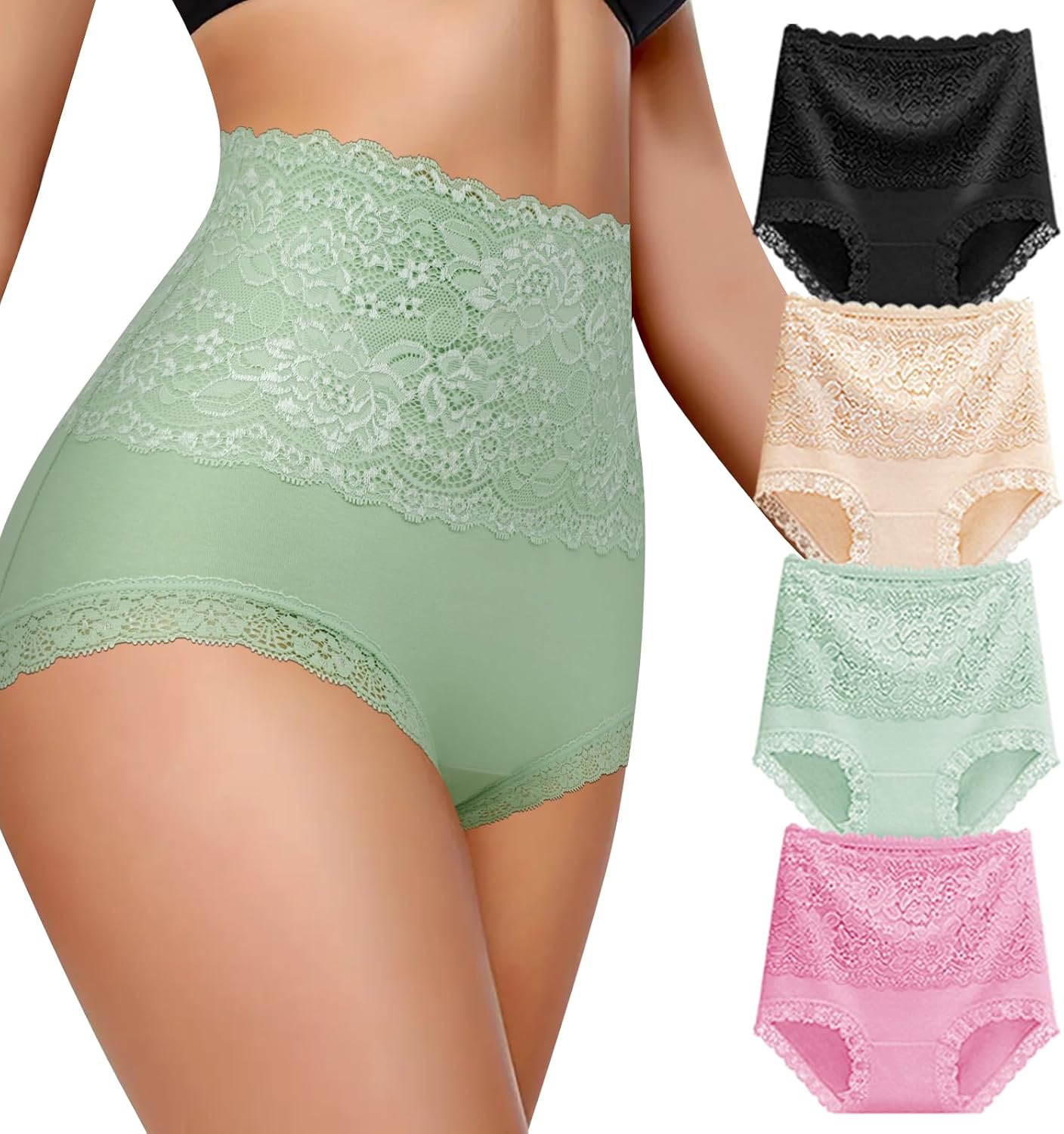 Women High Waisted Cotton Underwear Sexy Soft Lace Panties Breathable Full Coverage Ladies Brief Multipack