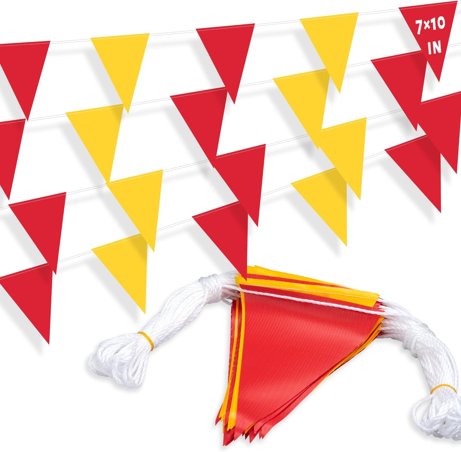 - Strong & Flexible Rope - Includes 45 pennants(7''x10'') and a 105ft nylon string with 500lb tensile strength, providing reliability and flexibility. Easily cut and tied into shorter strands for customized setups.