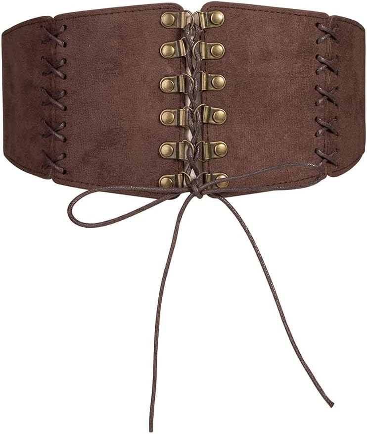 FGSS Women's Wide Corset Waist Belt Vintage Elastic Lace-up Waistband Renaissance Stretch Cincher Belt for Dresses