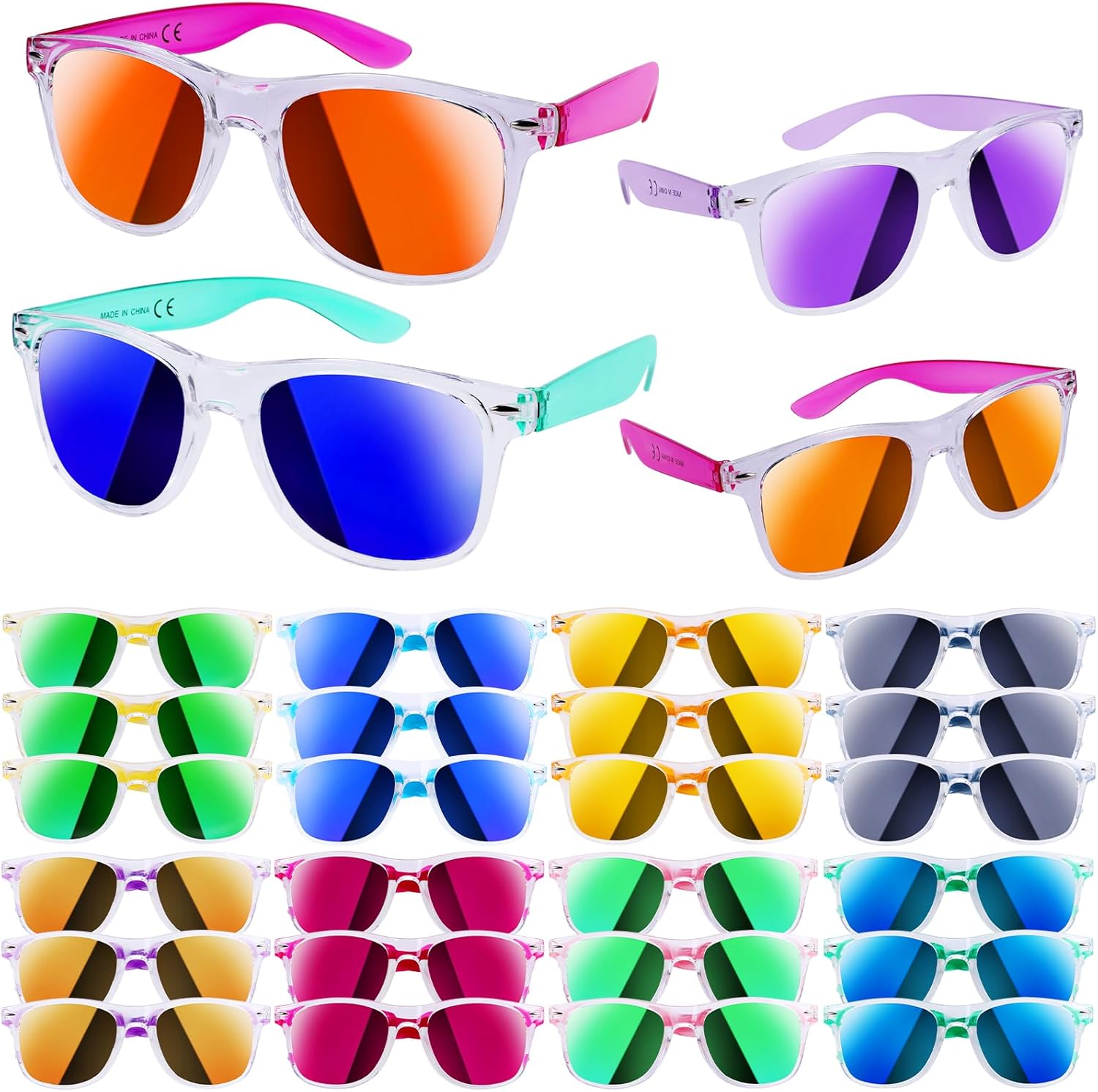 24 Pack Kids Sunglasses Party Favors, Neon Translucent Sunglasses with UV Protection in Bulk for Kids and Adults, Perfect for Summer Pool Beach Birthday Graduation Party, Outdoor Party Supplies