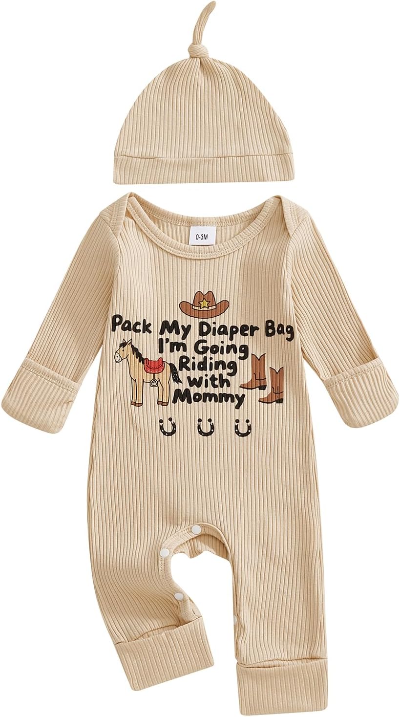 Western Baby Boy Fall Clothes Pony Jumpsuit Horse Riding Long Sleeve Romper Hat Cute Newborn Cowboy Going Home Outfit