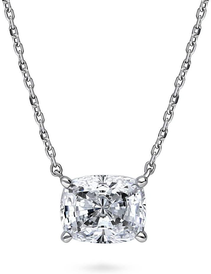 BERRICLE Sterling Silver Solitaire East-West Pendant Necklace for Women, Cubic Zirconia CZ - Emerald, Radiant Cut