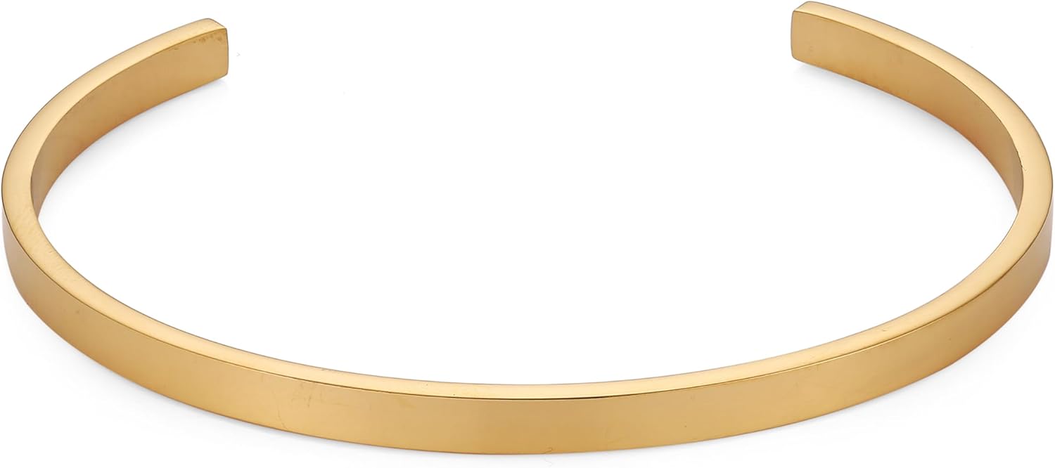 STWTR 18k Gold-Plated 4mm Wide Stainless Steel C-Shaped Opening Women'S Bracelet