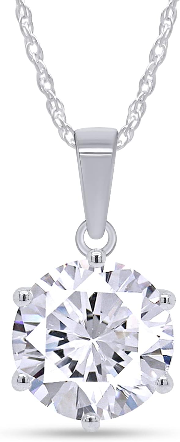 SAVEARTH DIAMONDS 3 Carat Moissanite Pendant Necklace In 18K Gold Plated Silver D Color Ideal Cut Lab Created Diamond Necklace for Women