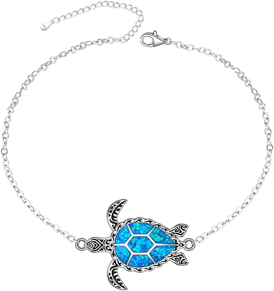 Turtle Anklet Blue Opal Turtle Ankle Bracelets for Women Sterling Silver Ocean Beach Hawaiian Sea Jewelry Gifts