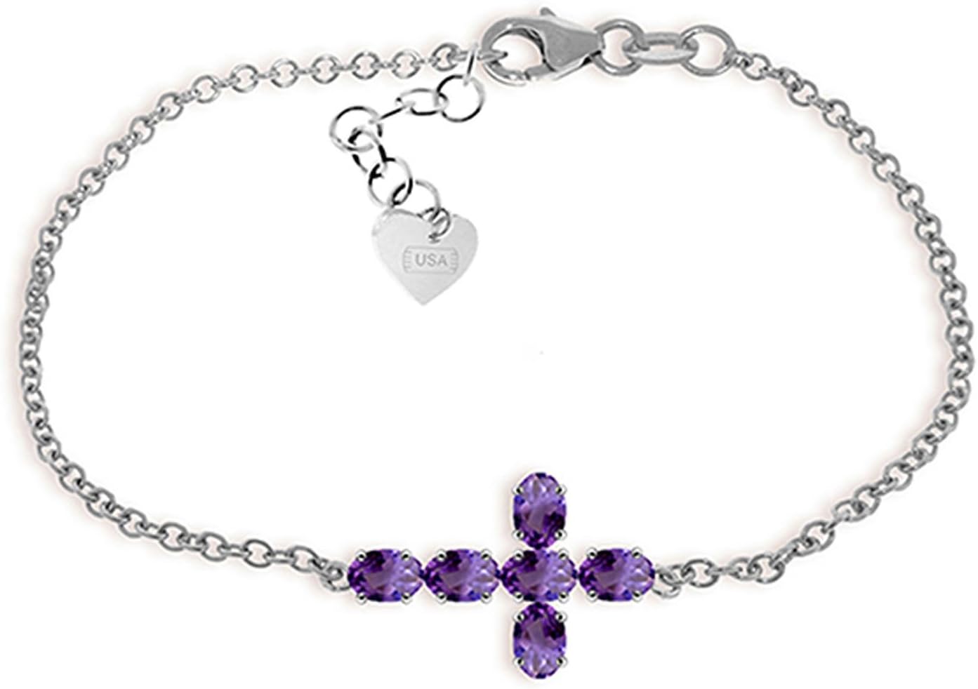 Amethyst Cross Bracelet in 14k White Gold