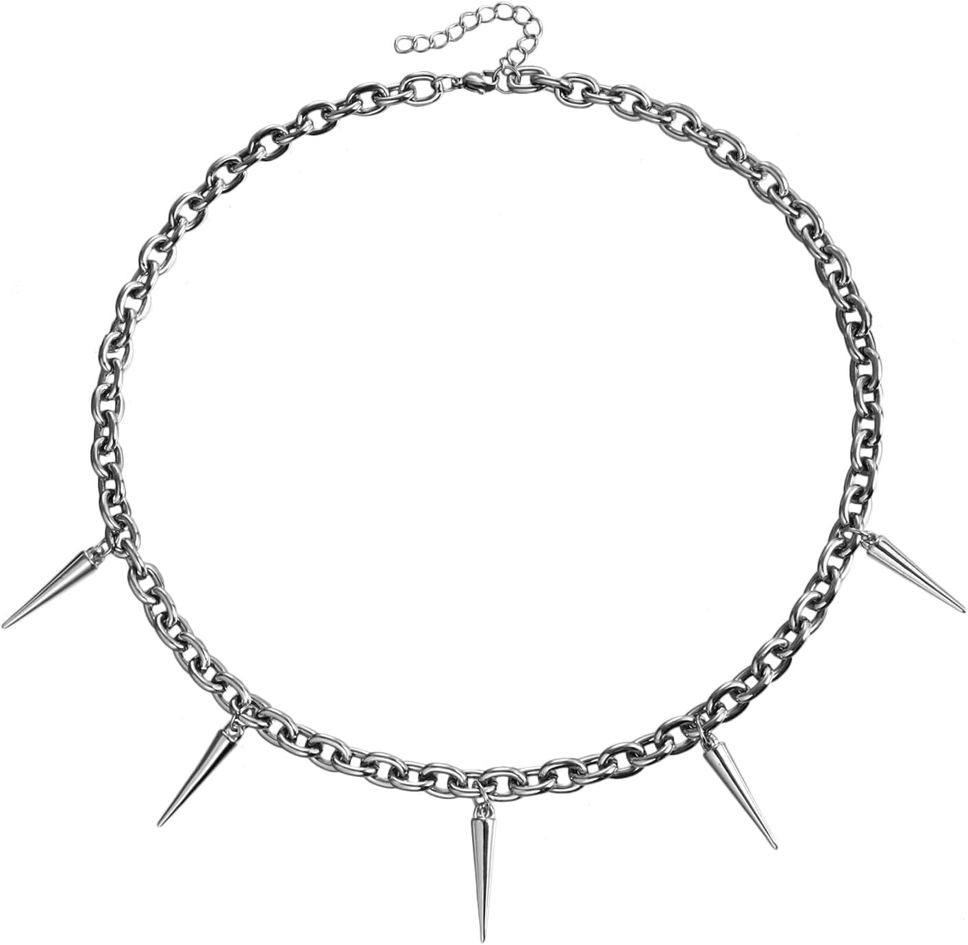 Silver Punk Spiked Chokers Necklaces Rivet Goth Necklaces Chokers with Spikes and Chain Streetwear jewelry Hard Rock Style Men Women Party Night Club Costume Accessories