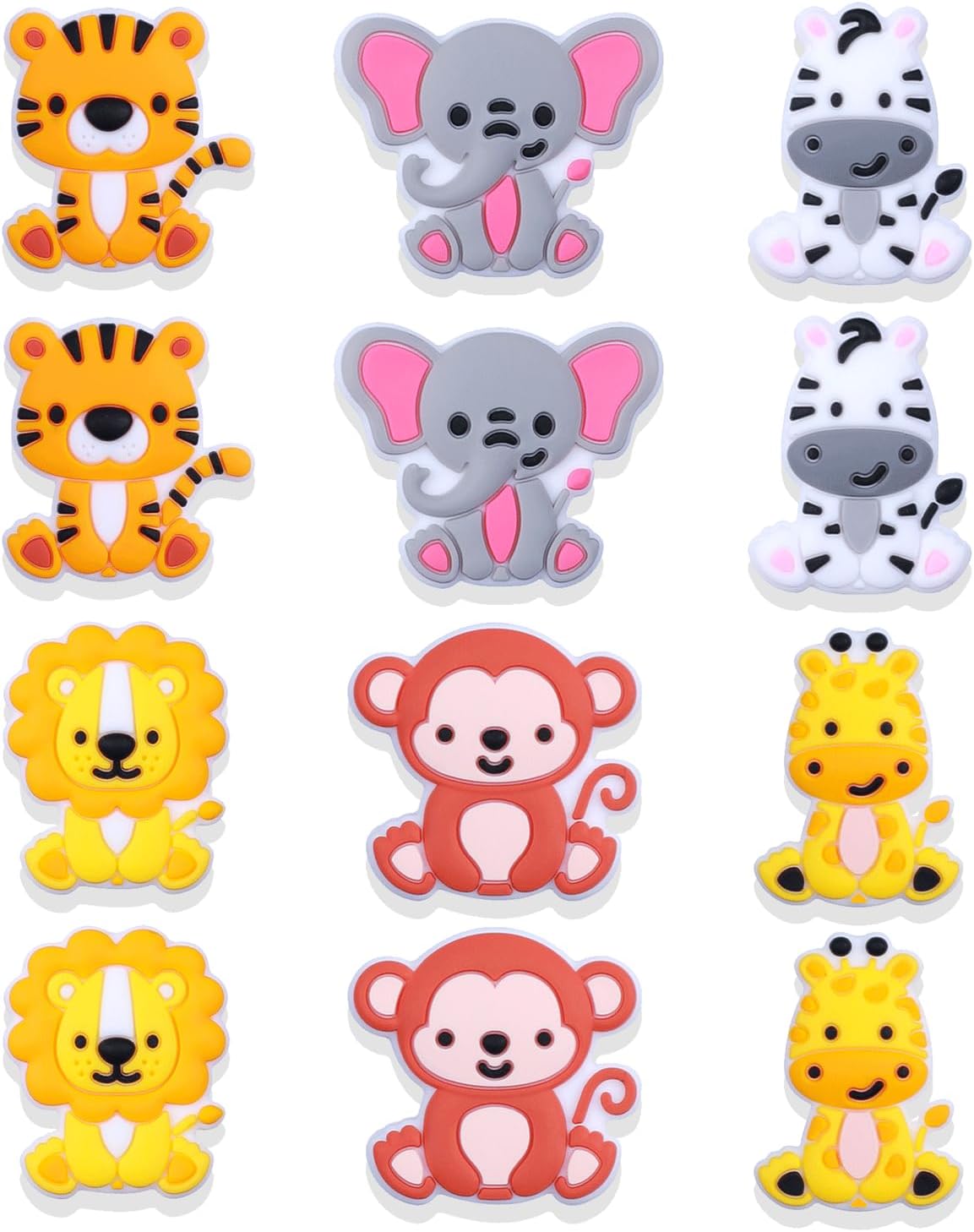 - 【Great Value】You will get 12 pcs animals silicone beads in 6 different animals, including tiger, lion, zebra, elephant, giraffe and mokey, 2 pcs per animal, enough to meet your own DIY art craft needs. Hole Size: 2mm.