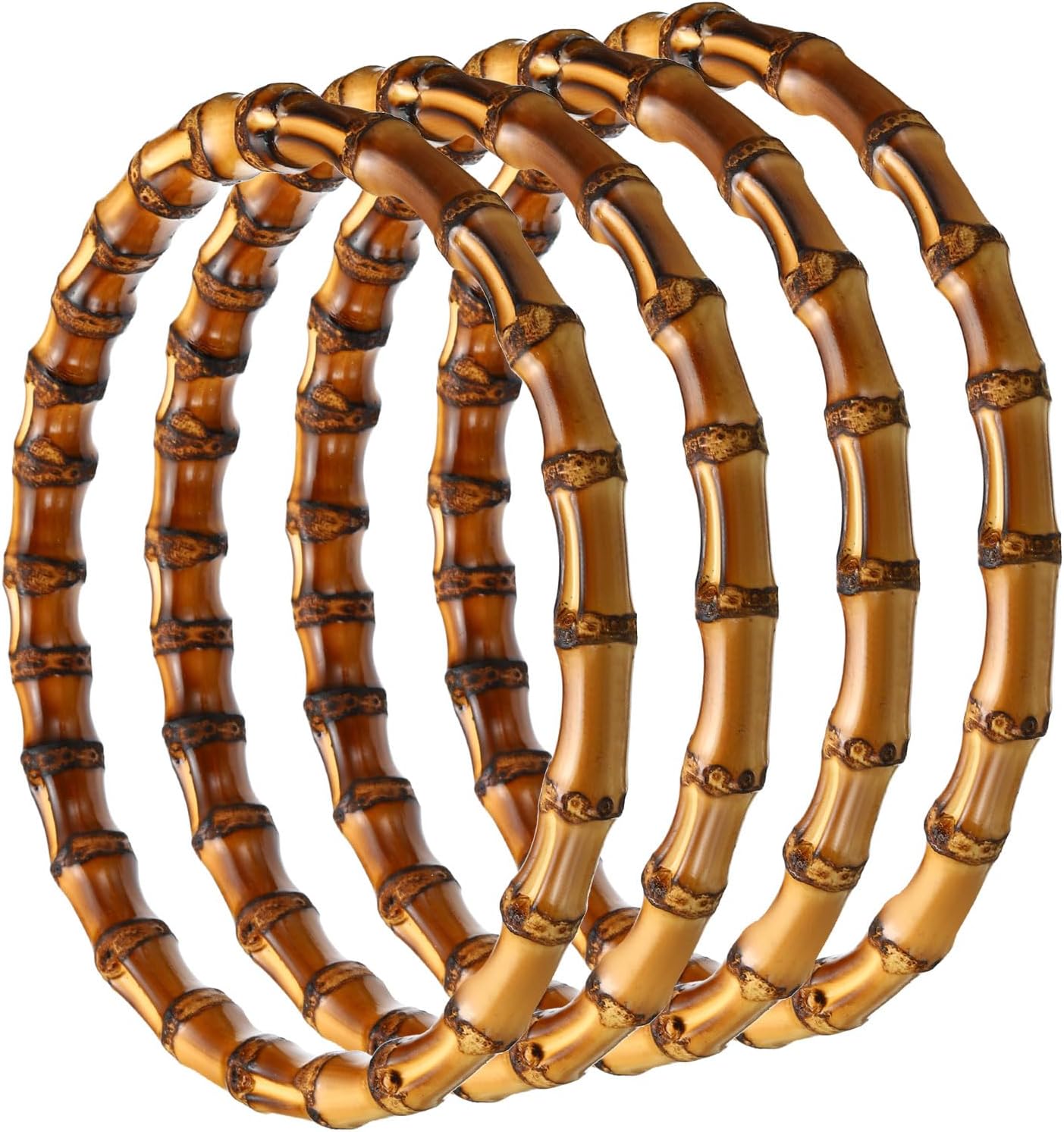 PATIKIL 6.7 Inch Bamboo Purse Handles, 4 Pcs Round Replacement Handmade Rings for Tote Bag Purse Making Decorations, Brown