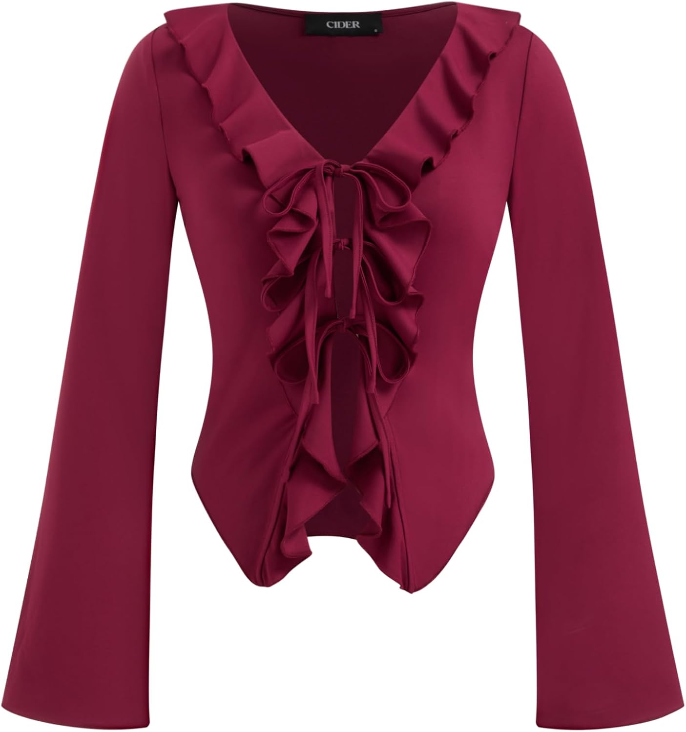 CIDER Womens Going Out Tops Long Sleeve V Neck Ruffle Tie Front T Shirts Tops