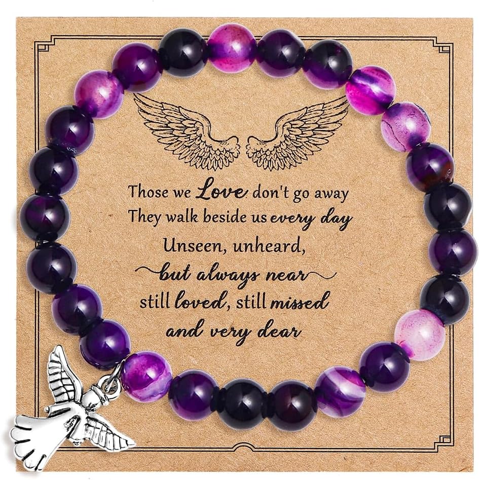COLORFUL BLING Inspirational Religious Bracelet Guardian Angel Charm Bracelets/Sympathy Gift for Loss of Loved One/Sympathy Gift Amethyst Bead Bracelet/with Angle Wings Jewelry Gifts for Women