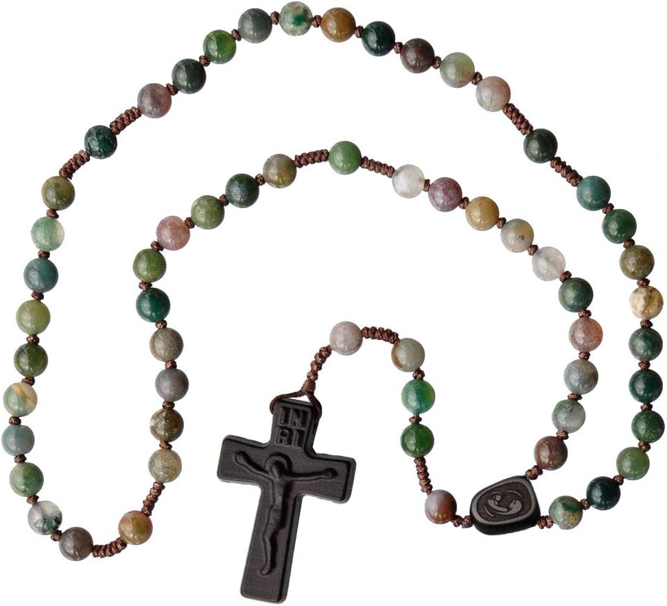 Sine Cera Multicolor Onyx Stone/Jujube Wood 5 Decade Catholic Rosary, Laser Cut Cruficix/Centerpiece,13" Durable Corded Design, Smooth 6mm Beads