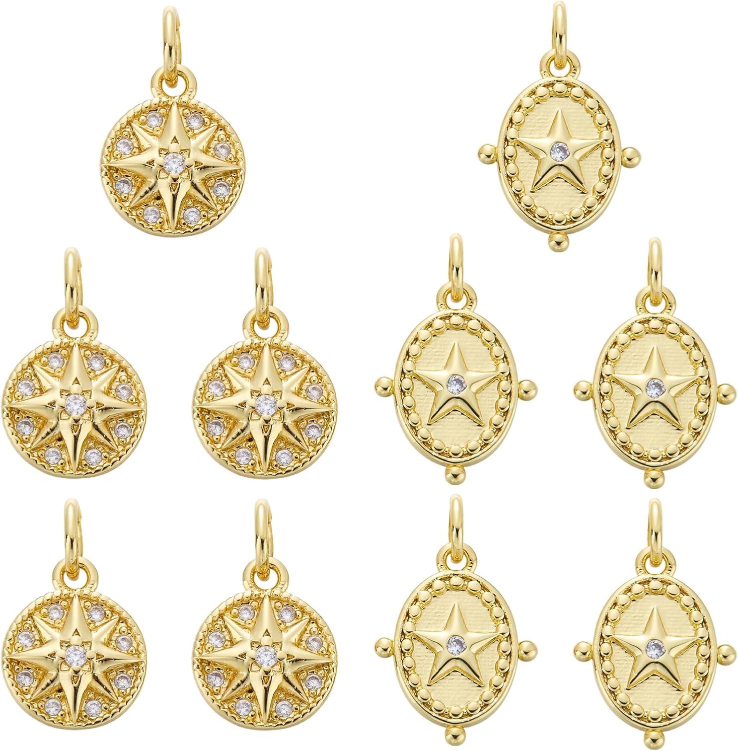 10Pcs Small North Star Charms for Jewelry Making Mini Cute Gold Plated Star Charms Brass Cubic Zirconia Pendants for DIY Necklace Bracelet Earrings DIY Supplies