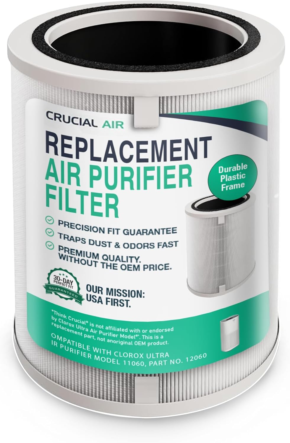 Think Crucial Replacement HEPA filter Compatible with Clorox Ultra Air Purifier Model 11060, XL Rooms up to 2,220 sq ft, Part # 12060, High-Efficiency Advanced Filtration Air Purification (1-Pack)