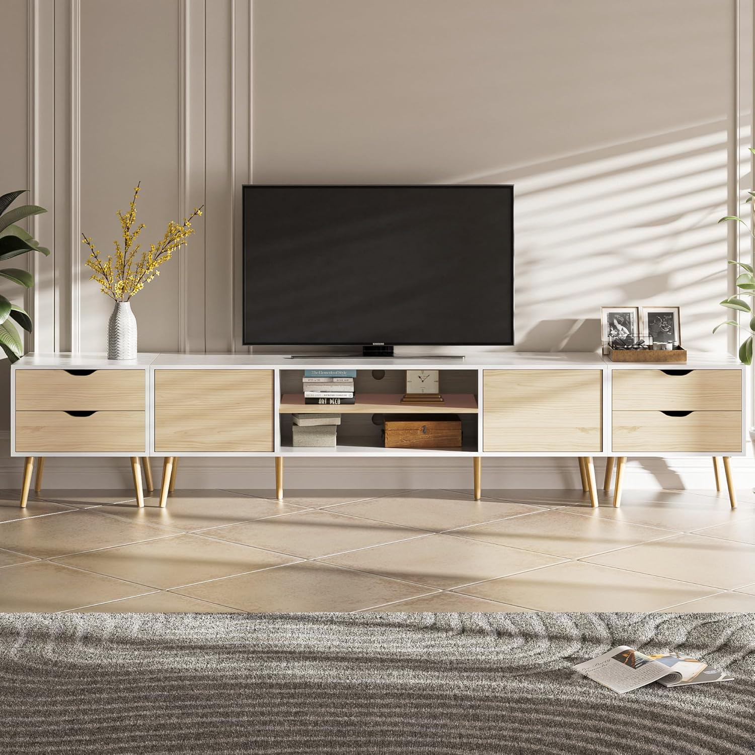 TV Stand for TVs up to 100 Inch, Entertainment Center for 85 95 100 inch TV Console Table with 2 Storage Cabinets and 4 Drawers for Living Room Bedroom