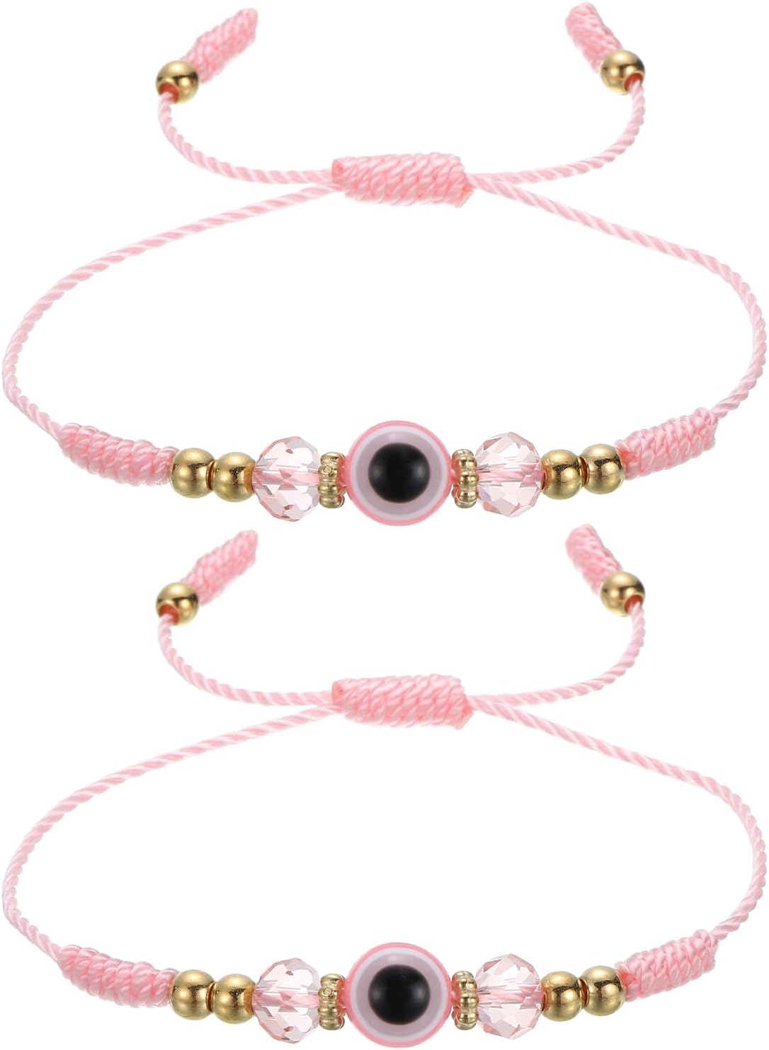 MECCANIXITY Light Pink Evil Eye Bracelets for Women Men Family 2 Pcs Adjustable String Good Luck Protection Handmade Eye Bracelet Blessing Jewelry