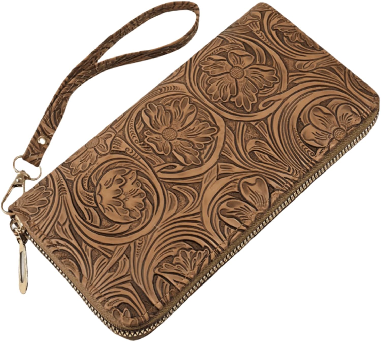 Womens Wallet Wristlet RFID Blocking Floral Vegan Leather Purse Long Zip Around Clutch Large Capacity Card Holder
