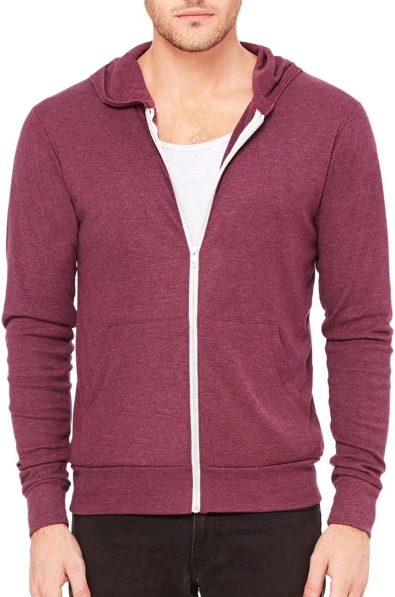 Bella + Canvas Unisex Triblend Full-Zip Lightweight Hoodie M MAROON TRIBLEND