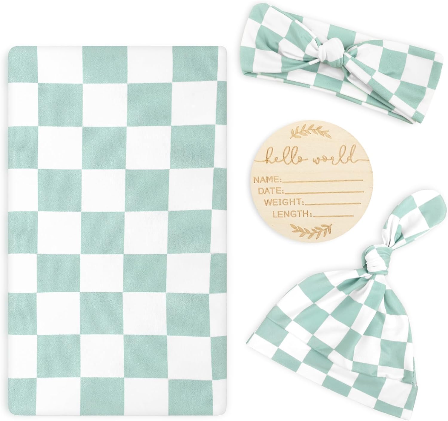 TANOFAR 4-Pack Newborn Swaddle Blanket for Baby Girls & Boys, Ultra Soft Receiving Blankets with Matching Headband and Beanie Set Baby Nursery Swaddle Wrap, Green Checkerboard