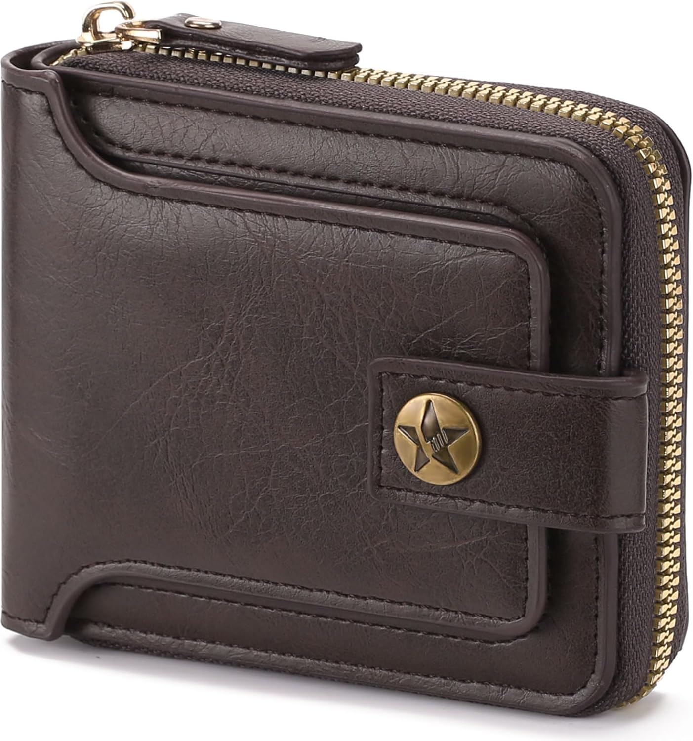 Wallet Men Leather Bifold Wallets For - Flap ID Window Zip Coin Pocket Mensr Wallets - Big Capacity Credit Card Travel Wallet