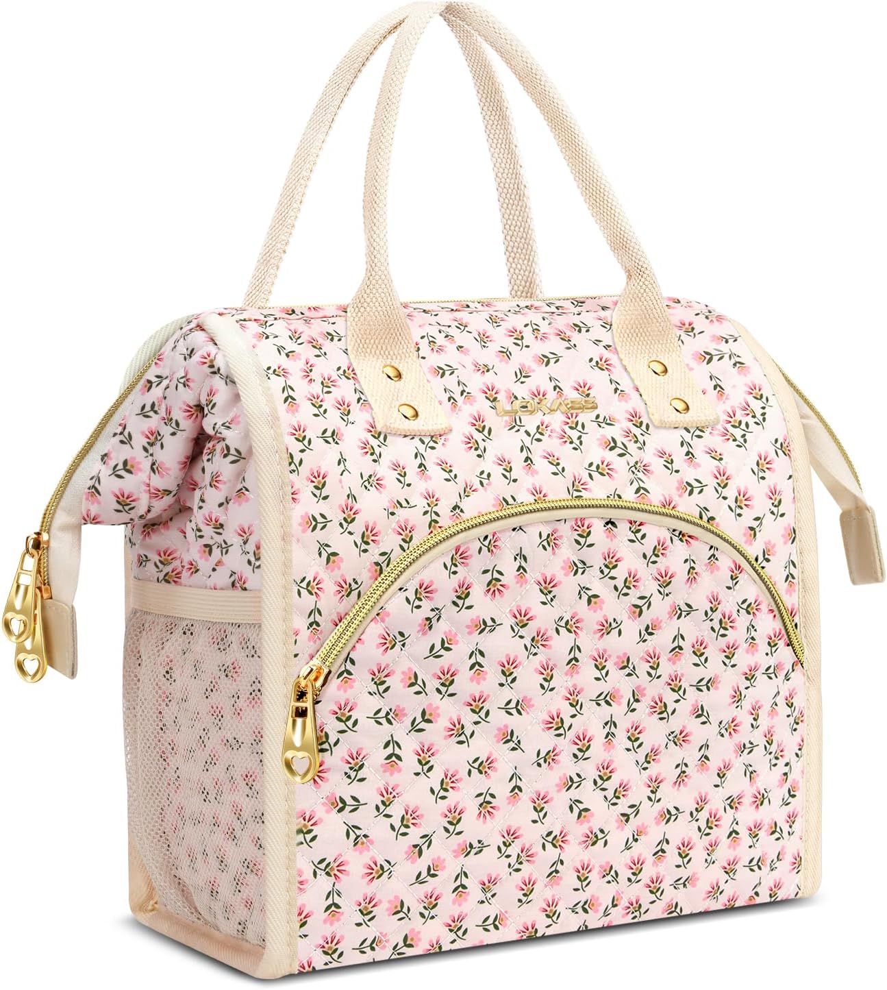 Lunch Bag Women Insulated Lunch Box Wide-Open Lunch Tote Bag Large Drinks Holder Durable Nylon Thermal Snacks Organizer for Men Adults Work Picnic Hiking Beach Fishing, Red Flower