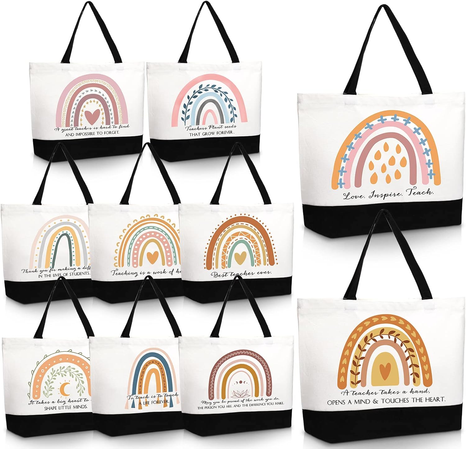 Sieral 10 Pcs Rainbow Canvas Tote Bag Teacher Appreciation Gift Bulk Retirement Thank You for Women(Cute Style)