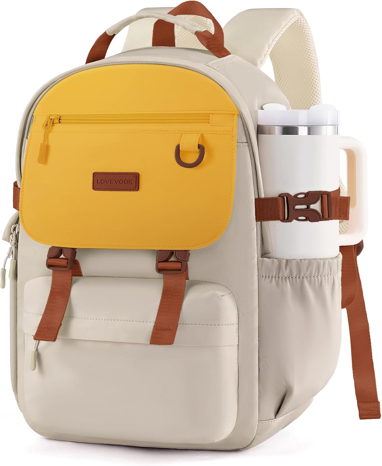 LOVEVOOK School Backpack for Girls with Large Tumbler Holder Pockets, Student Cute Bookbag 15.6 inch Laptop Daypack for Middle School Teen, Waterproof College Travel Bag for Women