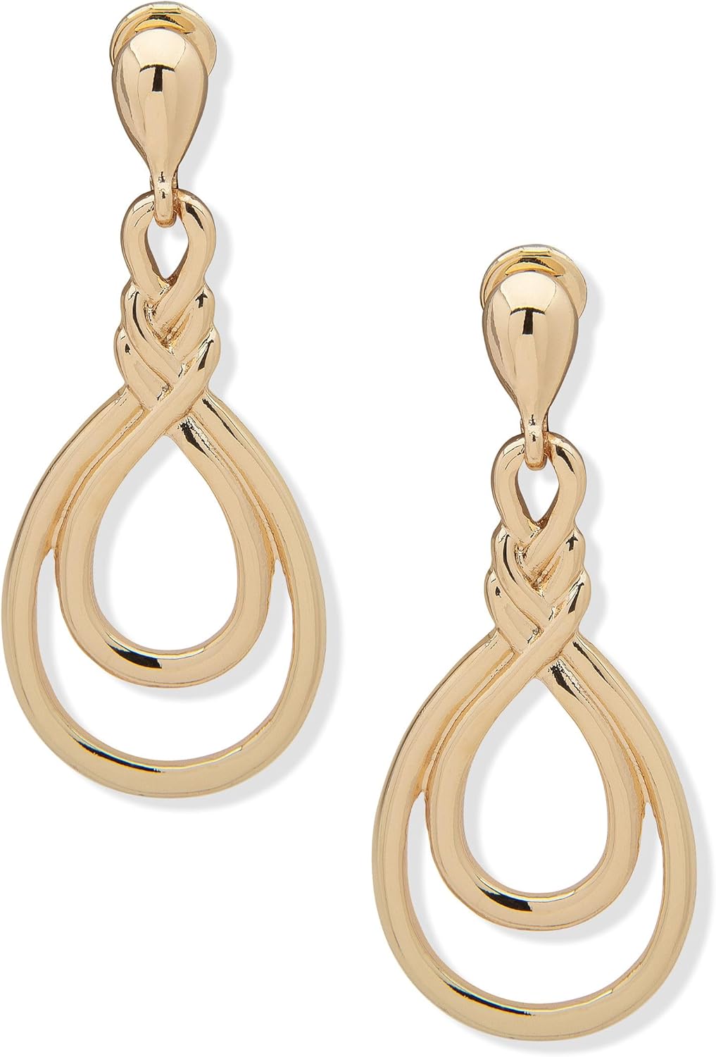 ANNE KLEIN Women's Gold EZ Comfort Clip Linear Earring Featuring Double Teardrop Linear Design
