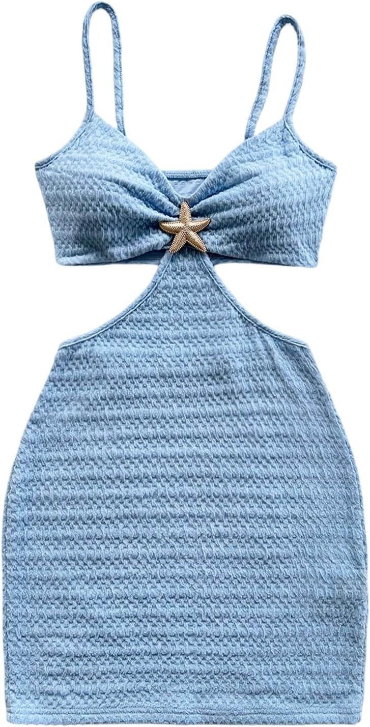 Floerns Women's Boho Knitted Cut Out Bodycon Dress Starfish Decor Backless Cami Mini Dress
