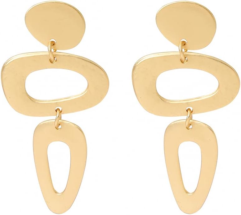 Gold Plated Curved Disc Drop Earrings Round Disc Dangle Earrings Minimalist Geometric Statement Earrings for Women