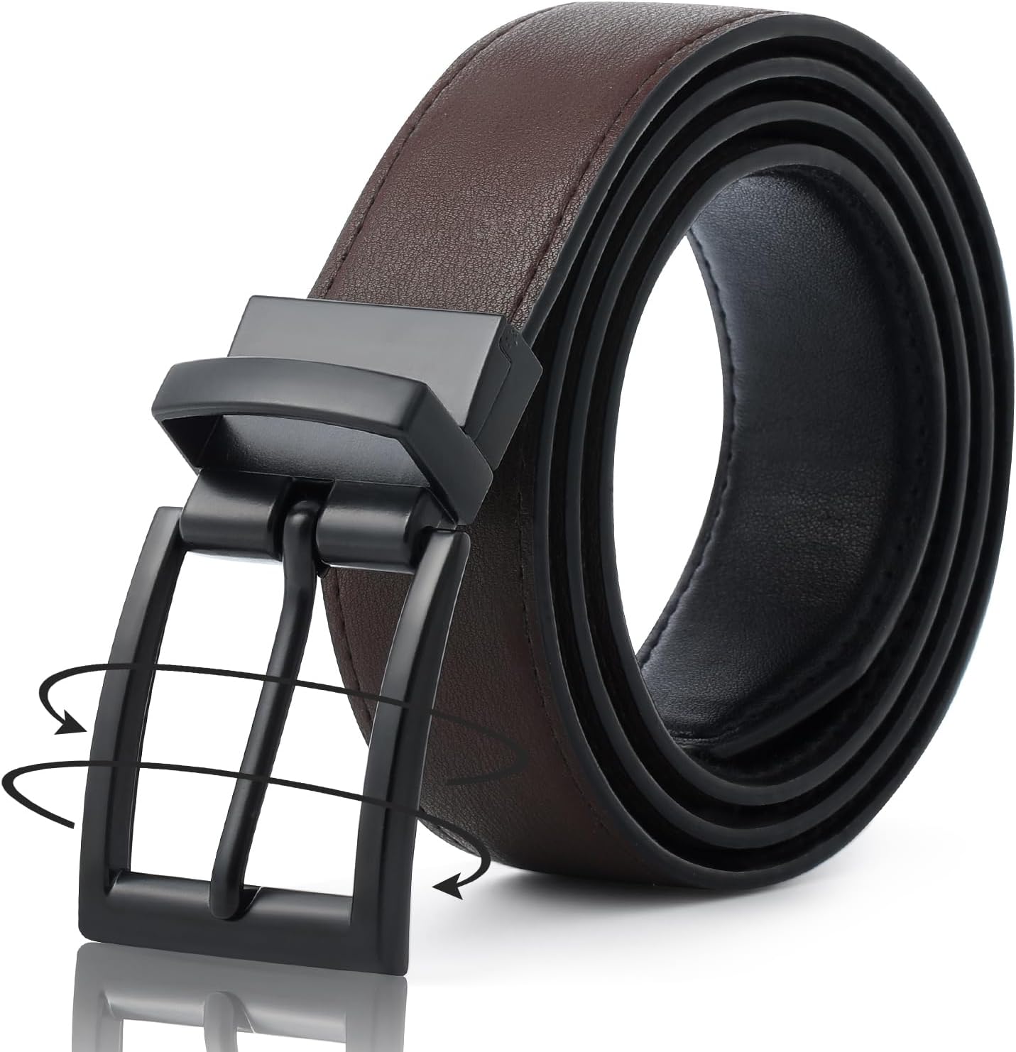 AWAYTR Reversible Leather Belt for Women - Two Color-in-One Belt for Jeans Dress Women Men Belt with Rotated Buckle