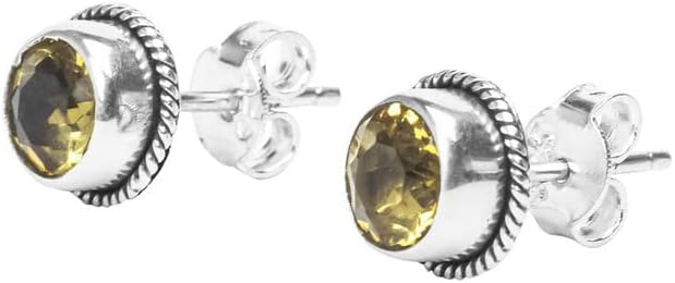 Gemstone Stud Post Earrings, 925 Sterling Silver Gemstone Earring 6 MM Round Girls Women Gift