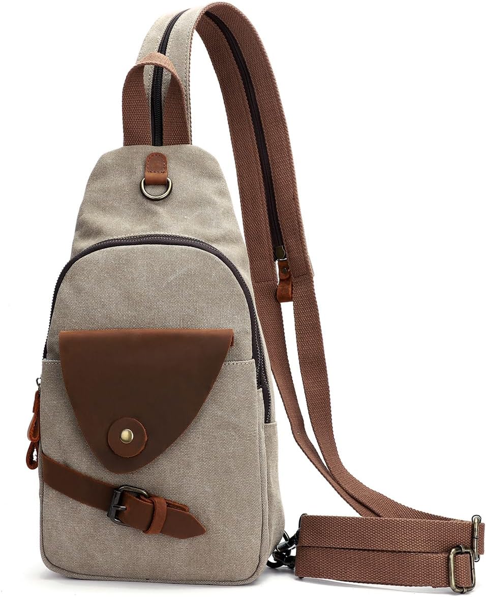 KL928 Canvas Sling Bag Crossbody Backpack Shoulder Casual Rucksack for Men Women,Khaki
