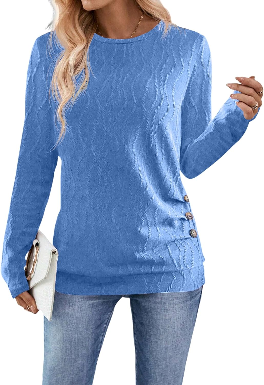 Samefar Womens Long Sleeve T Shirts Crewneck Fall Fashion 2025 Basic Business Casual Tops Tunics Clothing