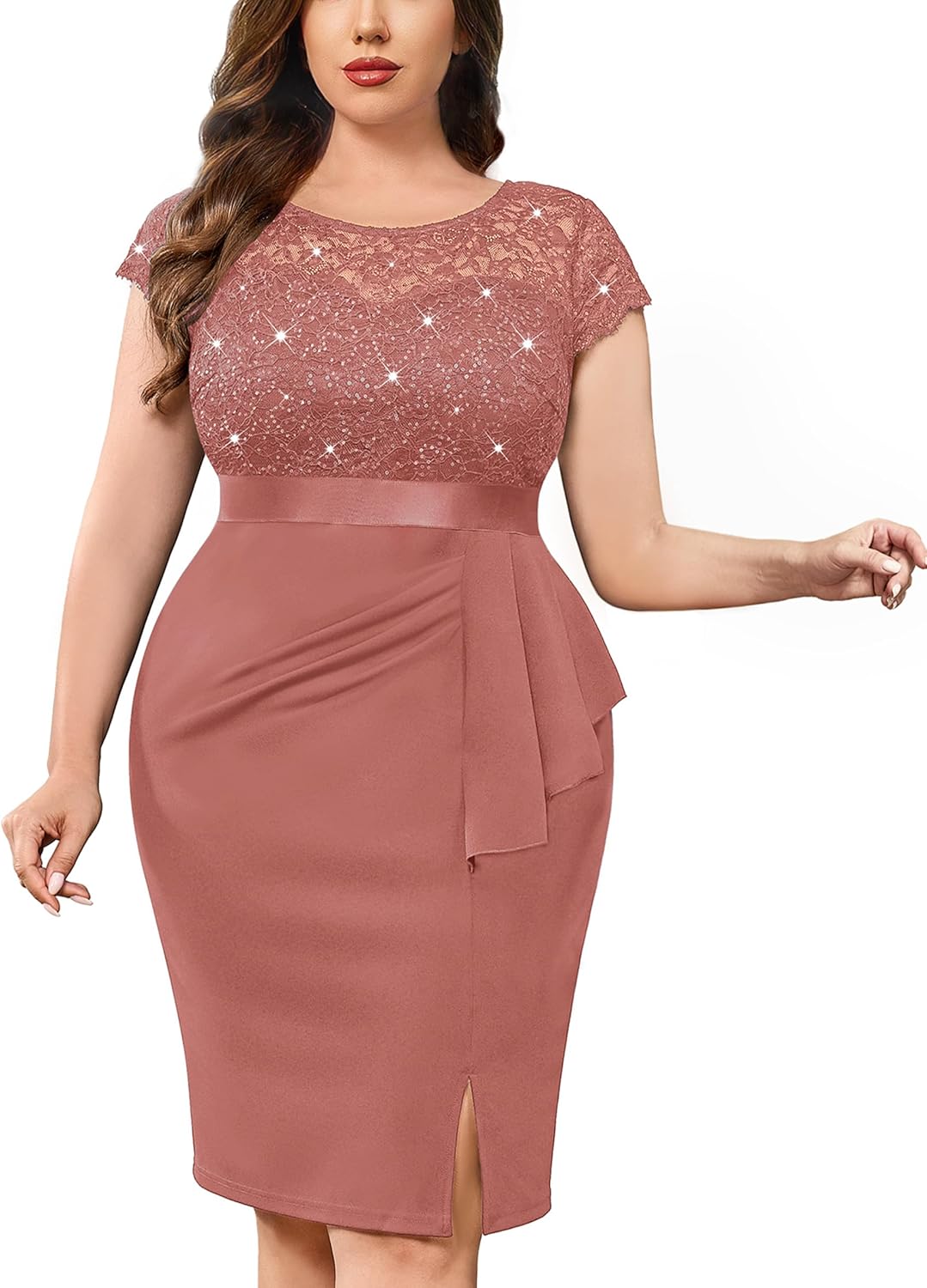 MISSMAY Women's Plus Size Sequin Floral Lace Ruffle Split Elegant Cocktail Party Dress