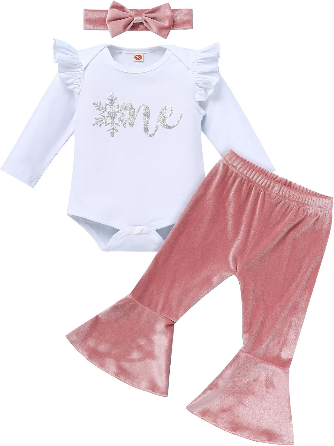 Baby Girls 1st Birthday Outfit Fall Pumpkin One Winter Snowflake One Romper Velvet Bell Bottoms Cake Smash Photo Shoot