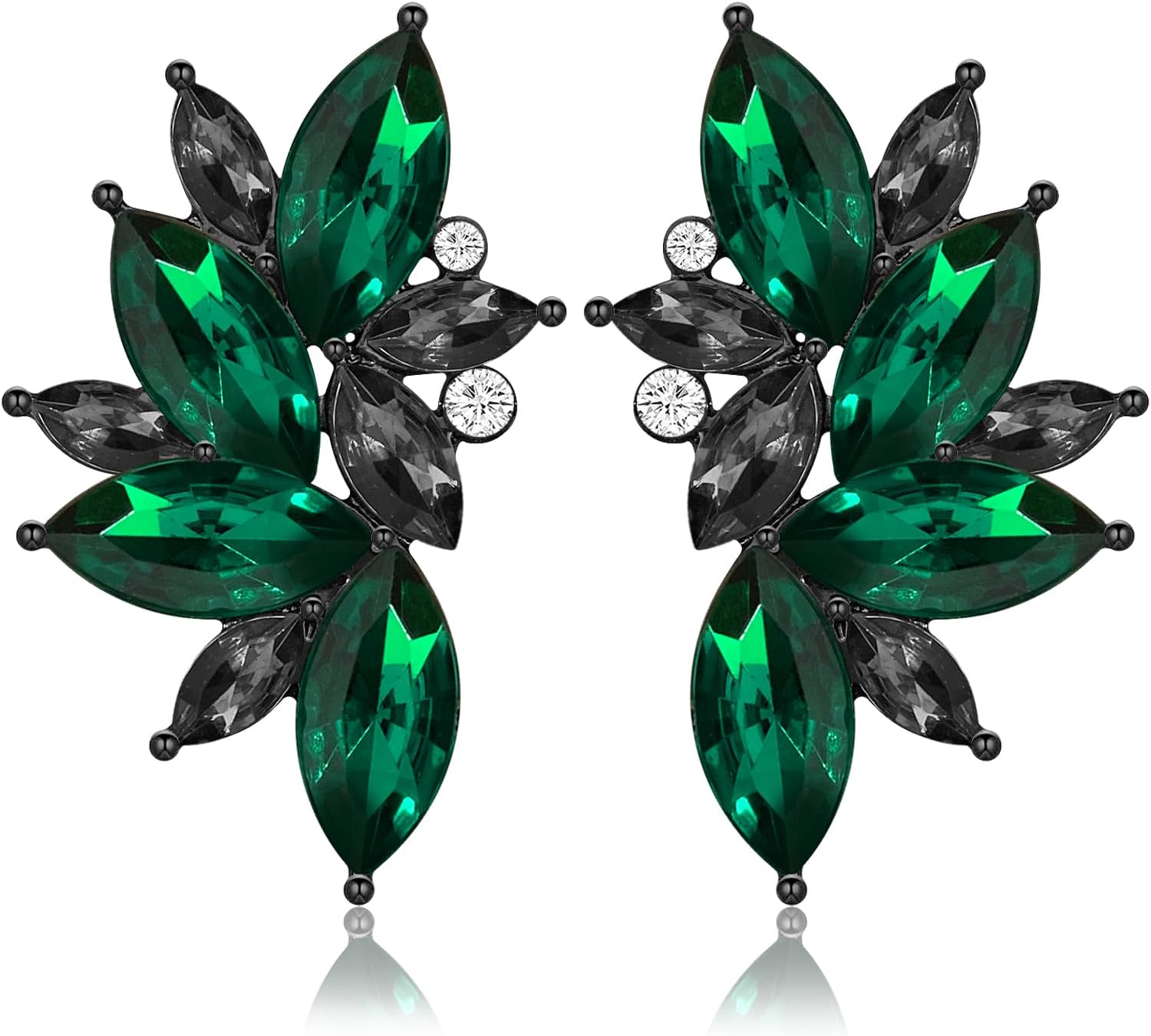 Bohemian Statement Sparkly Colourful Fancy Rhinestone Crystal Flower Dangle Drop Stud Earrings Vintage Wedding Bridal Prom Earrings for Women