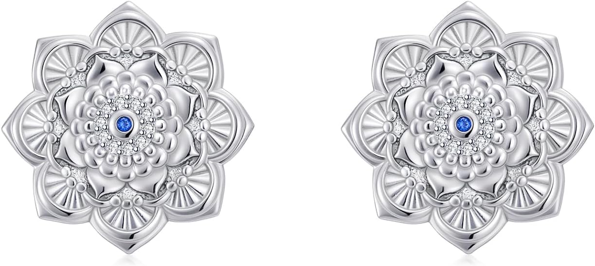 PEIMKO Evil Eye Earrings 925 Sterling Silver Lotus Evil Eyes Protection Devil Stud Earrings for Women