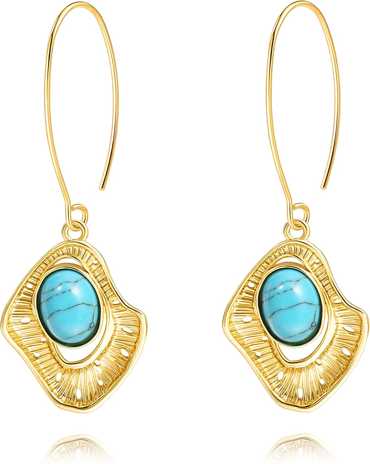 SOFYBJA Dainty 18K Gold Plated Disc Ball Triangle Sunburst Drop Earrings Long Dangle Lightweight Handmade Earrings Jewelry