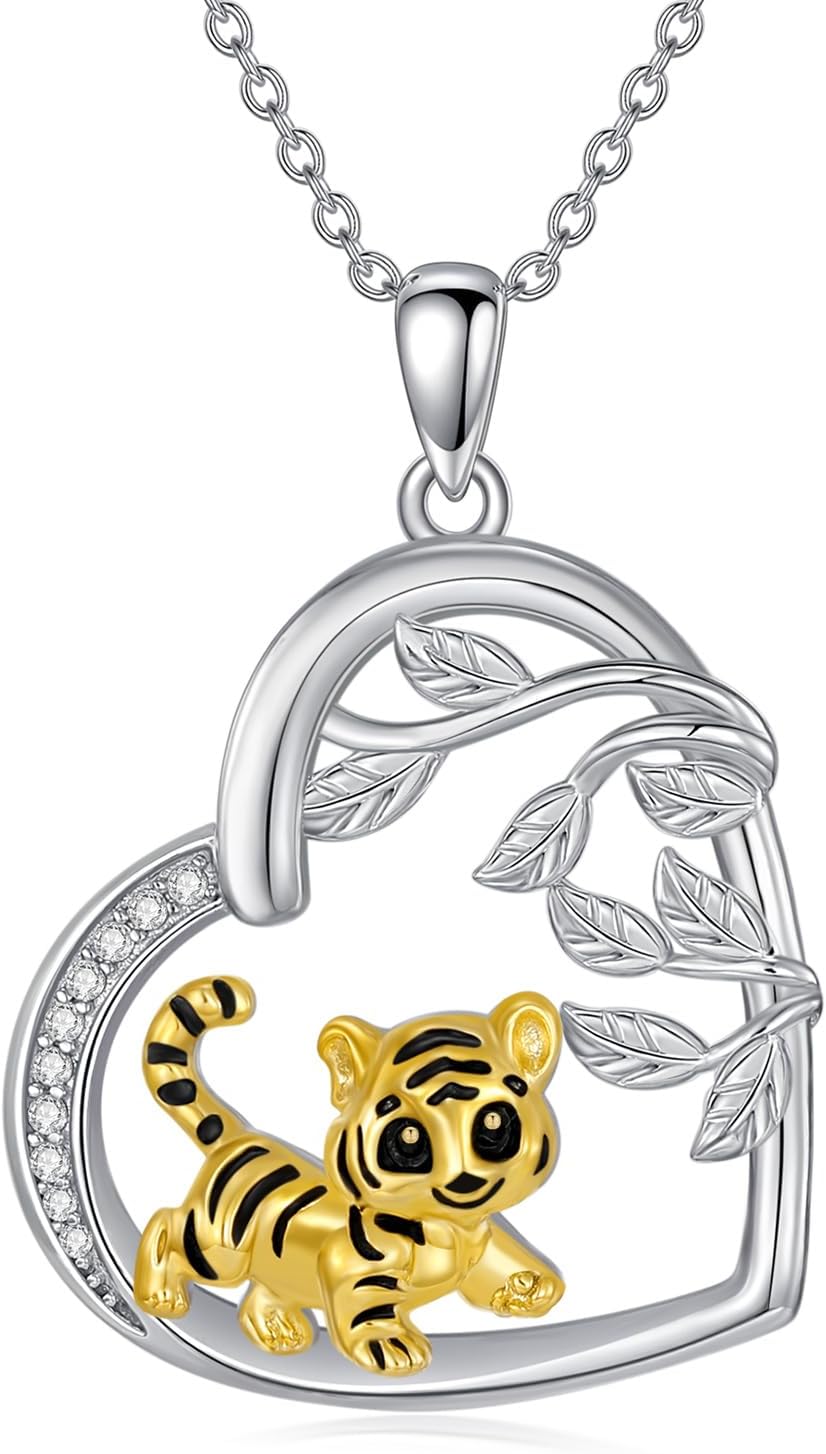 925 Sterling Silver Fox/Giraffe/Koala/Panda/Dog/Raccoon/Tiger/Cow/Snake/Penguin/Frog Necklace Cute Animal Pendant Birthday Gifts for Women Animals Lover