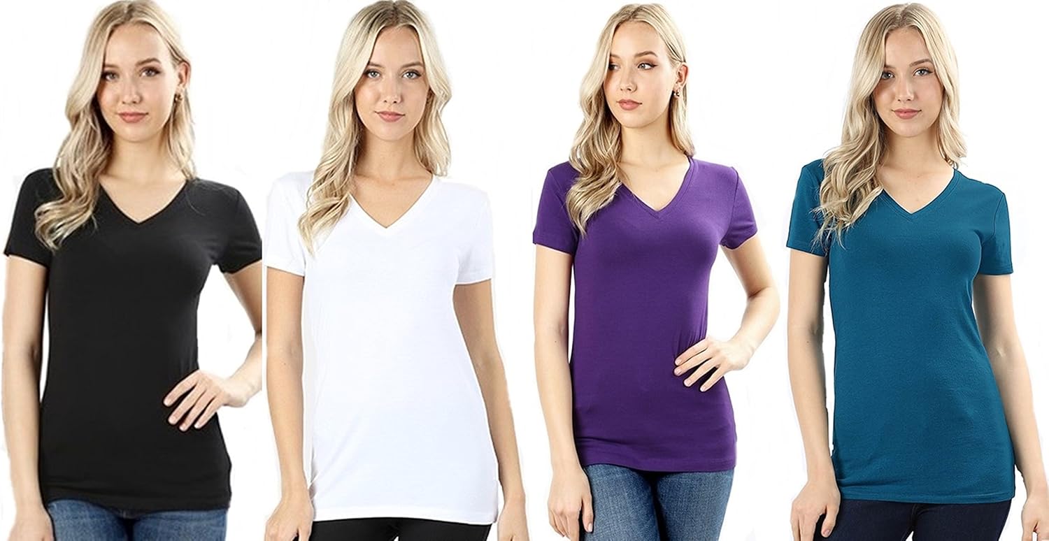 4 Pack Zenana Women's Basic V-Neck T-Shirts